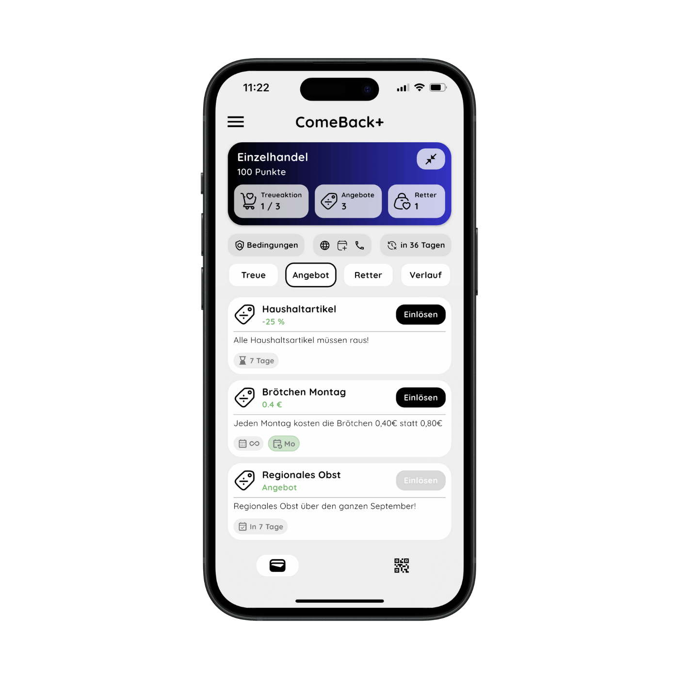 Präsentiert Sie digital – inklusive aller verfügbaren Aktionen. So sind Sie für ihre Kunden jederzeit sichtbar. Die Punktevergabe und Konditionen ganz nach ihren Regeln. Lege den Punkteverfall selbst fest – je nachdem wie häufig der Durchschnittskunde zu Ihnen kommt. Das sorgt für mehr Anreize und bringt ihnen 1–2 zusätzliche Besuche pro Kunde.